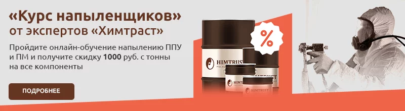 Система Компонентов для Напыления с плотностью свободного вспенивания до 32 кг/м3 и группа горючести Г3 для бесшовной теплоизоляции.